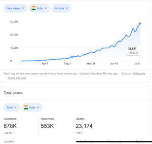 また基本ロックダウンに加え、マハラシュトラ以外でも感染者数は伸びており、南部 IT都市であるベンガルル(バンガロール)などは完全首都封鎖を7月14日まで敢行することになりました。