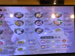 タイ、マレーシア、ベトナムと東南アジアに積極的に進出している丸亀製麺、当然現地語と日本語の表記があり、お値段は各国わかりませんがベトナムでは当然ローカルのフォーよりは高いが、お出汁とうどんを茹でてる湯気につられて入店。