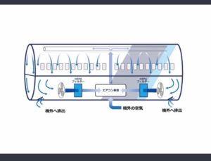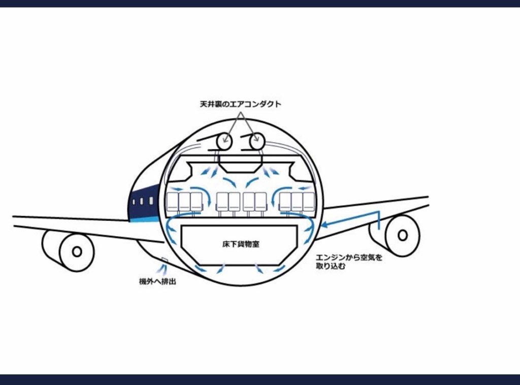 - 機内の空気の循環と換気はバッチリ:航空機は飛行中空気を取り込み3分ほどで機内の空気が入れ替わる