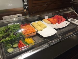 朝食時間のコールドビュッフェ。フルーツの種類が多いのが嬉しい