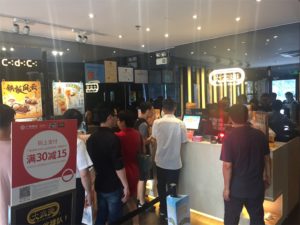 勝手に松屋、中国版と名つけて今まで香港でお昼時混み合っている店舗は見たことがあるのですが、中国しかもそれほど大きくない町番禺で見つけたのでオクラお昼時とはいえそれほど混んでいないだろうと思い、ランチに初めて入ってみた。