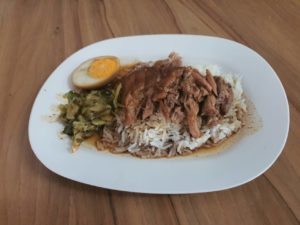 簡単にいうと豚肉、豚足の五香粉(ウーシャンフェン)たっぷり使った煮込みご飯のせ料理です