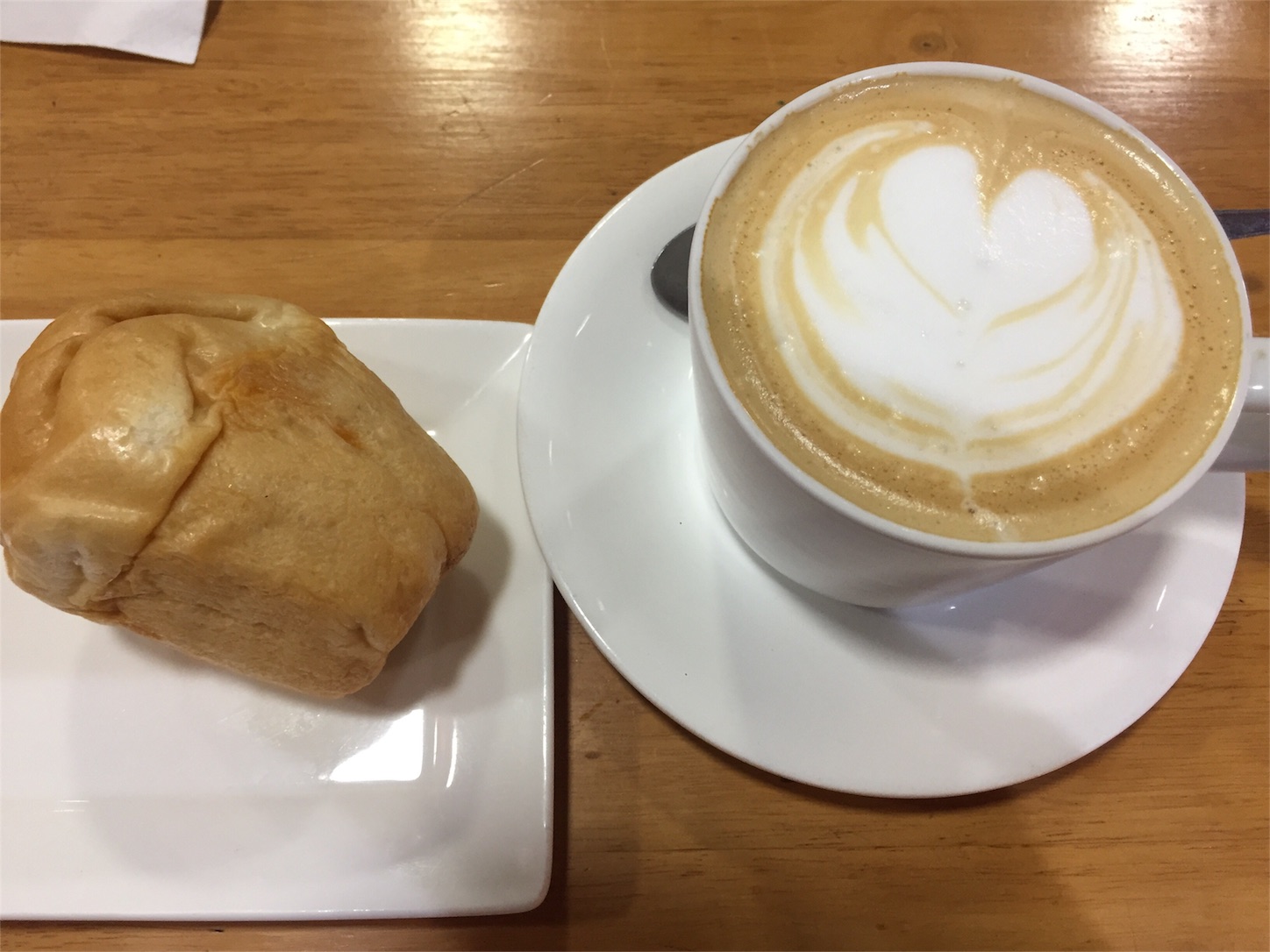 惣菜パンは安く、一個10バーツ(34円)〜15バーツ(50円)とカプチーノは45バーツ(150円)